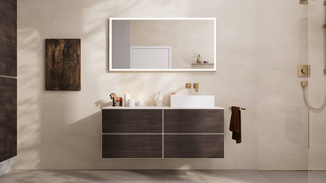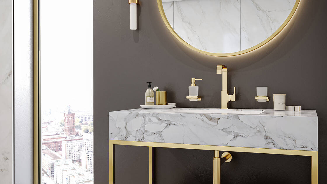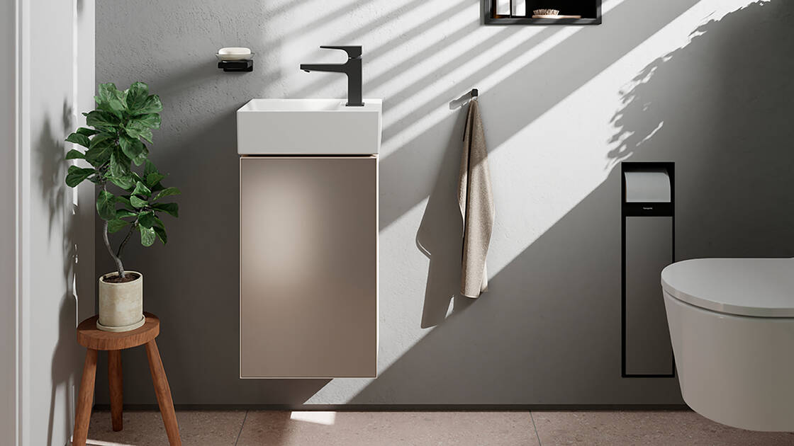 Mit eleganten FinishPlusOberflächendesigns wird Metropol noch individueller. Setzen Sie persönliche Akzente, oder gestalten Sie Ihr Bad durchgängig in einer Trendfarbe. Bei Metropol wählen Sie aus matten Farbtönen wie Mattschwarz und Mattweiß oder edlen Metallicfarben wie Brushed Bronze und Polished Gold Optic.
