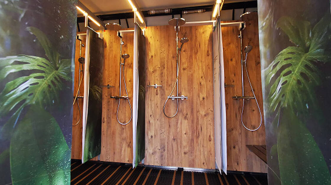 Ob Sportveranstaltung oder Festival: hansgrohe DuschTrucks sorgen für Wasserspaß on the road. Im Innenraum der temporären Sanitäranlagen befinden sich jeweils 20 Duschplätze. Auf dieser Seite werden Sie auch fündig, wenn Sie bereits Gast in einem DuschTruck waren und nun nach Ihrer Wunschbrause suchen.